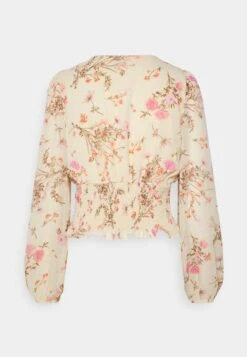 Vero Moda Vmrosa V Neck Smock – T-Shirt À Manches Longues – Creme Brulee Pink Yarrow