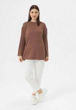 Marc O’Polo DENIM Crewneck Waffle Structure – T-Shirt À Manches Longues – Stone Melange